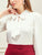 Berrylush BIZwear Women Solid White Tie-Up Neck Bishop Sleeves Slip-On Regular Top
