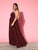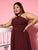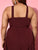 Berrylush Women Plus Size Solid Maroon Halter Neck Sleeveless Crepe Flared Maxi Dress