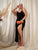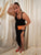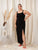 Berrylush Women Plus Size Solid Black Square Neck Sleeveless Straight Hem Thigh-High Slit Knitted Bodycon Maxi Dress