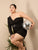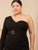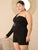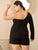 Berrylush Curve Women Solid Black One-Shoulder Neck Long Sleeve Belted Waist Straight Hem Knitted Mini Jumpsuit