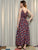Berrylush Women Maroon & Blue Floral Printed V-Neck Waist Tie-Up Thigh-High Double-Slit Flared A-Line Maxi Dress