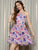 Berrylush Women Pink & Multicolour Floral Printed Square Neck Sleeveless Backless Tie-Up Layered Fit & Flare Mini Dress