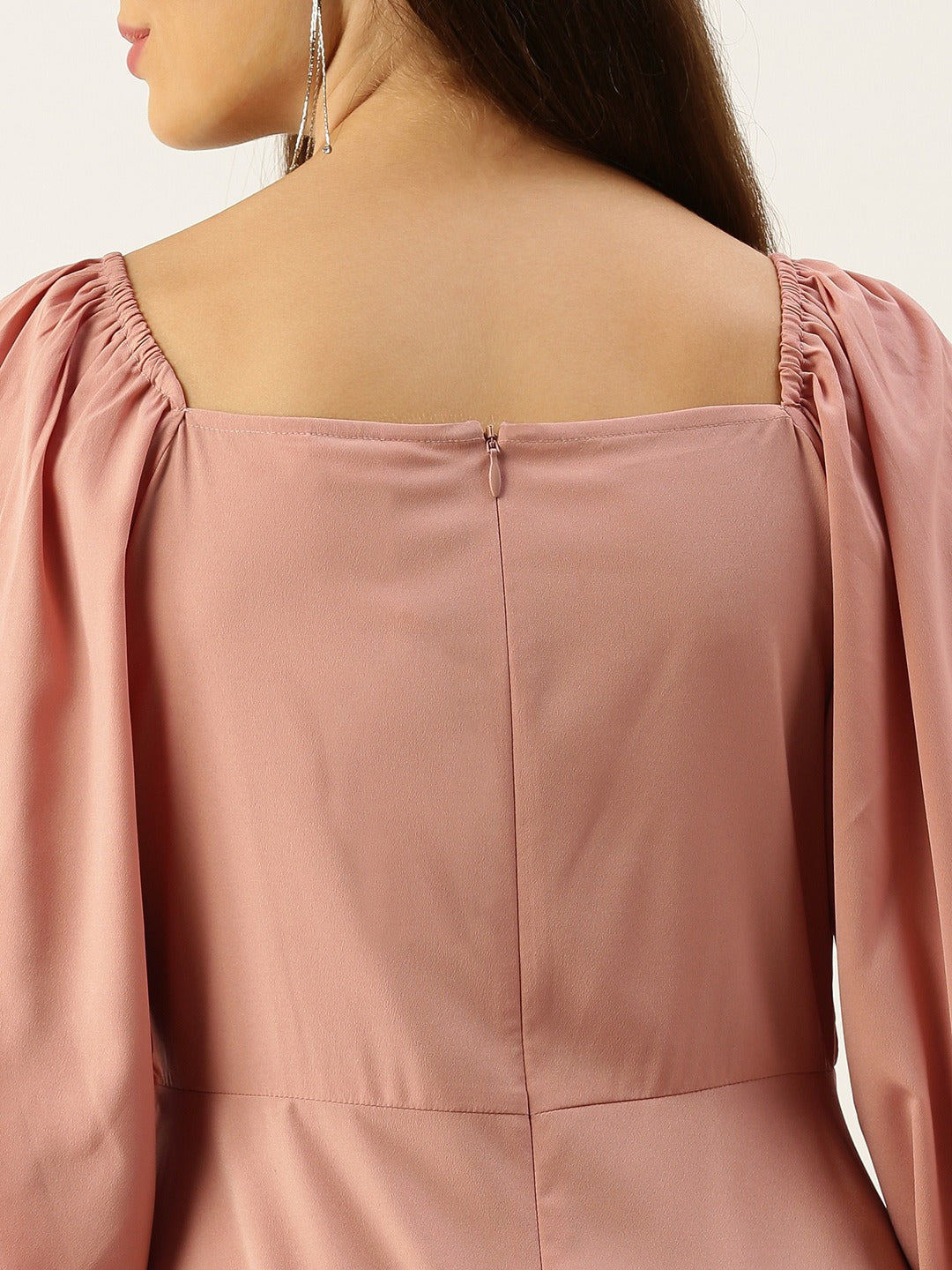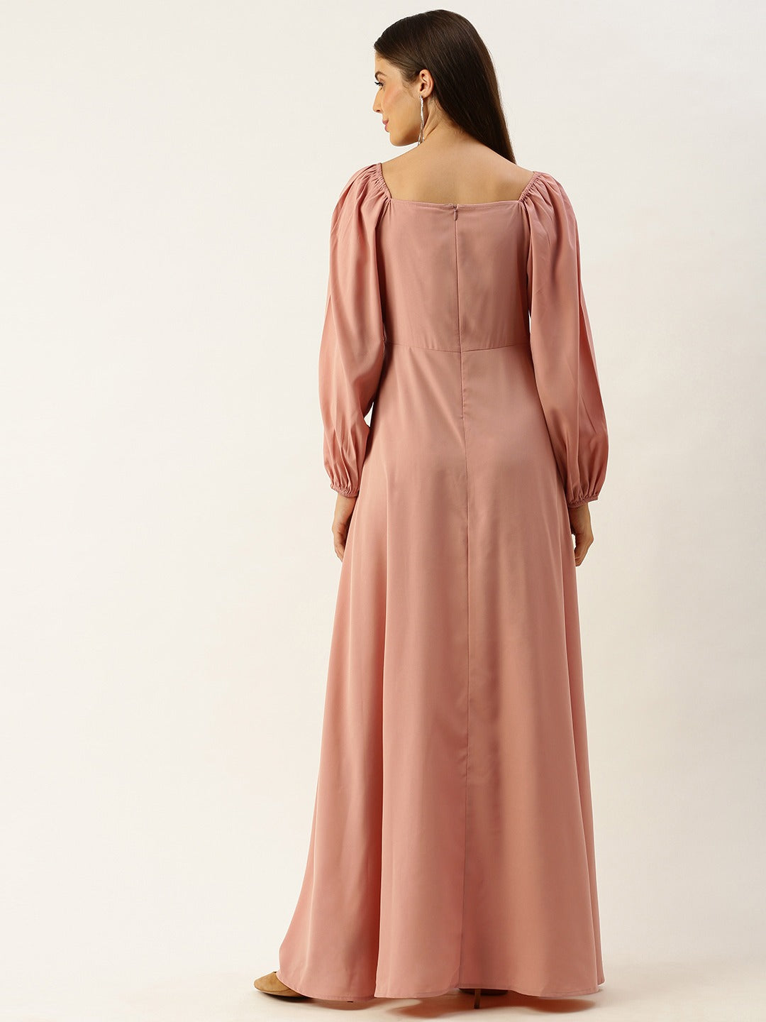 Berrylush Women Solid Peach Square Neck Slim-Fit Maxi Dress