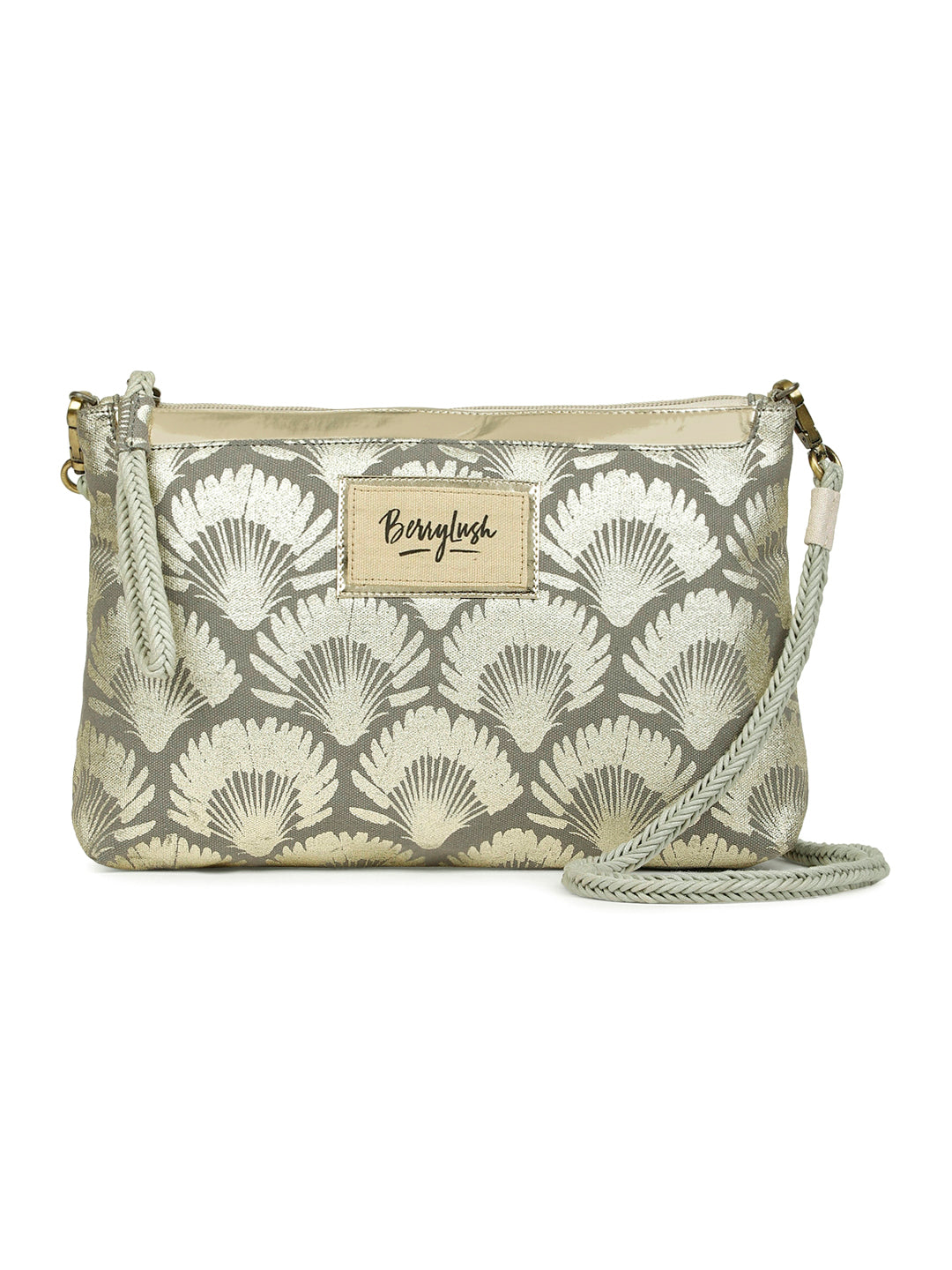 Berrylush Women Grey & Silver Floral Printed Canvas Detachable Sling Strap Small Clutch/Sling Bag
