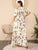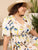 Berrylush Curve Women White, Blue, & Orange Butterfly Floral Printed V-Neck Tie-Up Waist Thigh-High Slit Flared A-Line Maxi Dress
