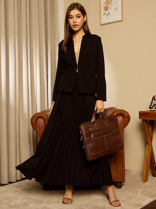 Berrylush BIZwear Women Solid Black High-Rise Waist Slip-On Pleated A-Line Maxi Skirt