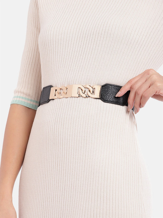 Berrylush Women Black Elastic Strap Chain Buckle Belt