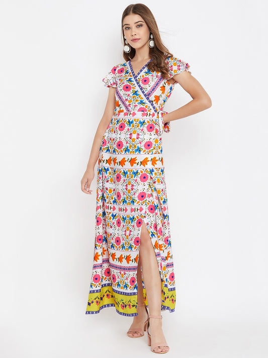 Berrylush Women Rose Floral Printed Tie-Up Neck Backless Thigh-High Slit Asymmetric Maxi Dress