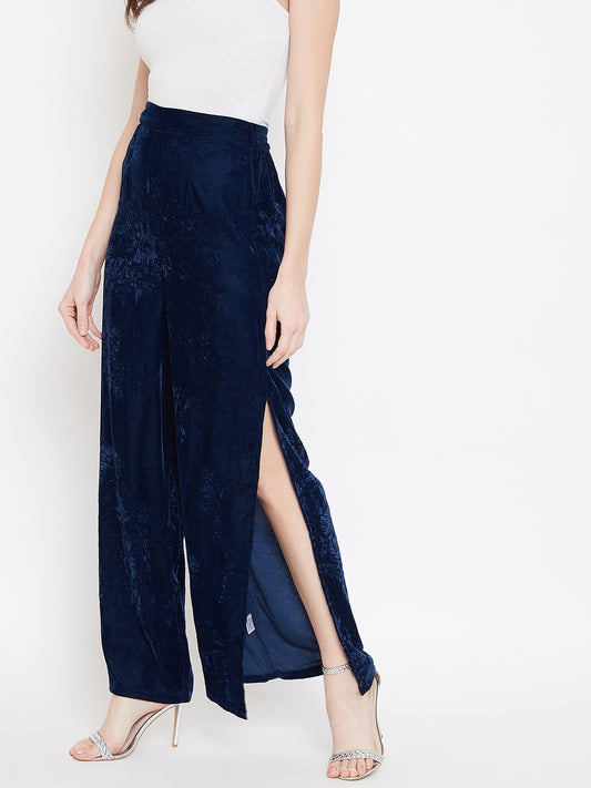 Berrylush Curve Women Plus Size Solid Blue V-Neck Sleeveless Thigh-High Slit Flared Maxi Dress