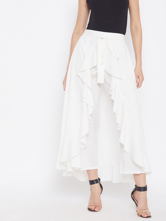 Berrylush Women Green & Yellow Floral Printed Round Neck Waist Tie-Up Crop Top & Wide-Leg Trousers Set
