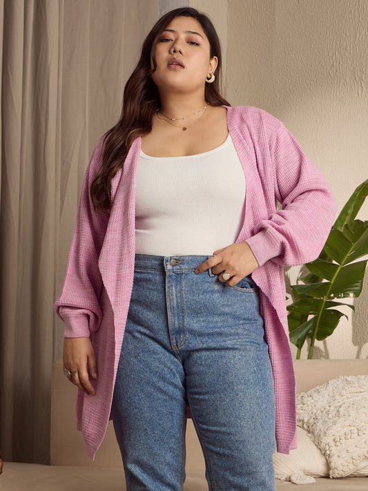 Berrylush Curve Women Pink Star Printed Round Neck Acrylic Ribbed Hem Regular Sweater