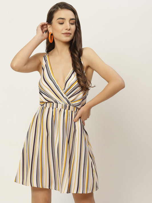 Berrylush Women Purple Abstract Printed A-Line Front Tie-Up Mini Dress