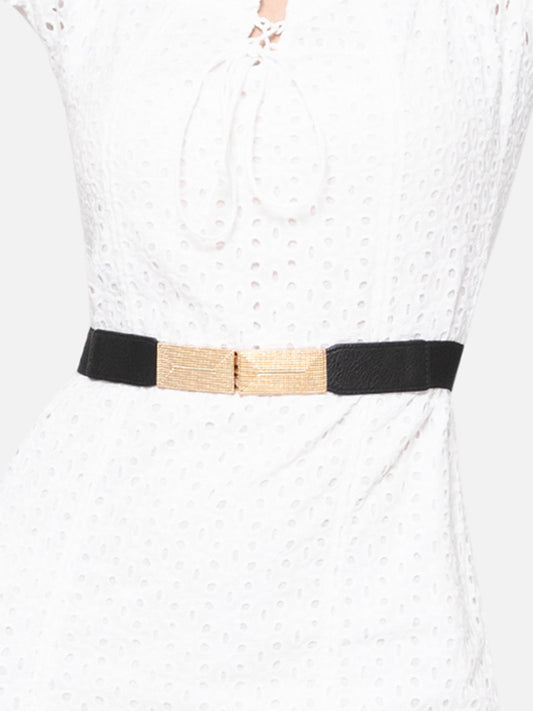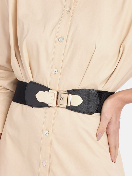 Berrylush Women Black Elastic Strap Golden Buckle Belt