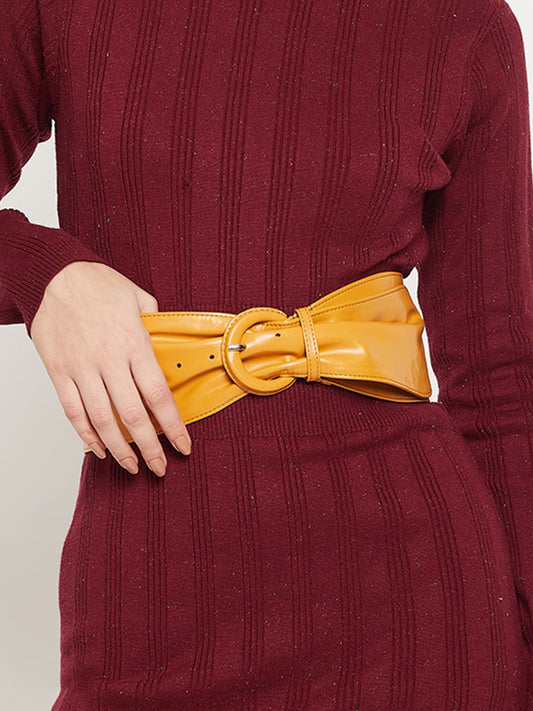 Berrylush Women Tan Brown Front Insert Tie-Up PU Belt