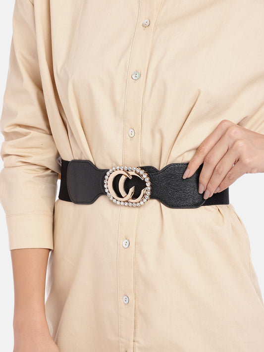 Berrylush Women Black Elastic Strap Blush Buckle Belt