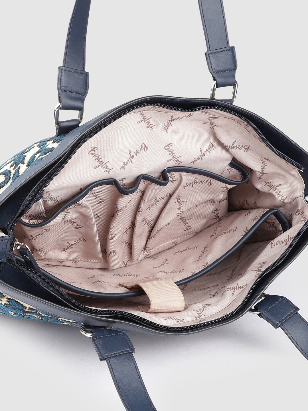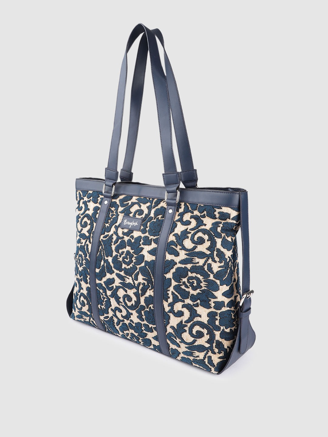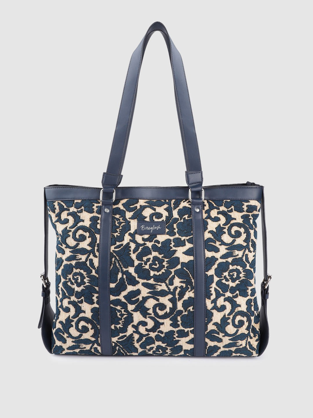 Berrylush Women Off-White & Blue Floral Printed Structured Regular Laptop Bags