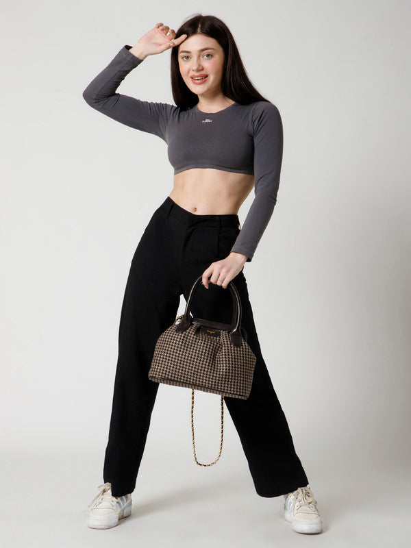- Brown shade and houndstooth print give this bag an aesthetic look
