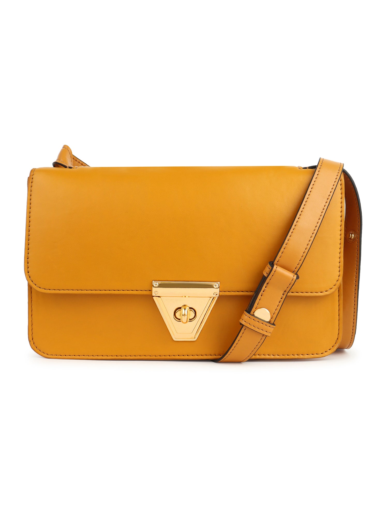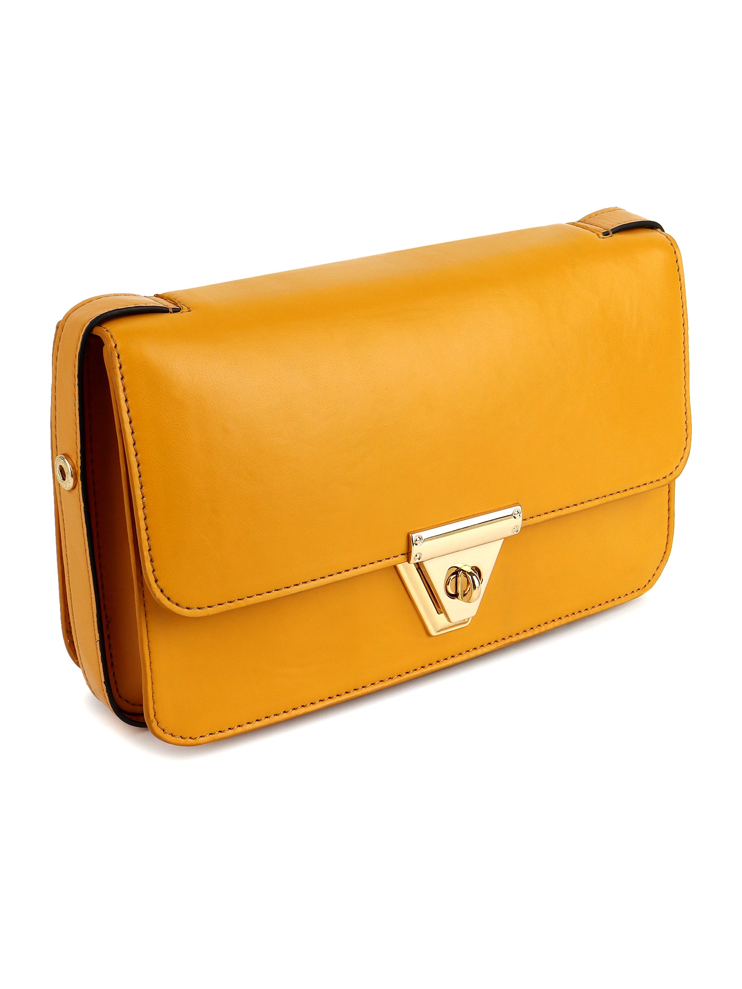 Berrylush Women Solid Yellow PU One-Handle Push Lock Embellished Shoulder/Sling Bag