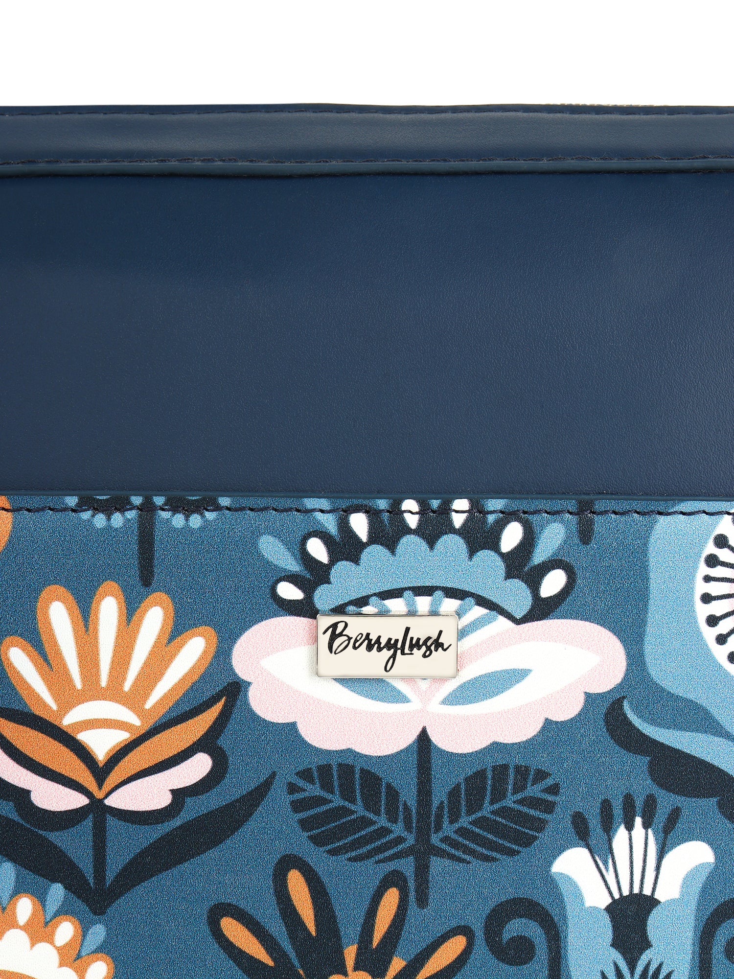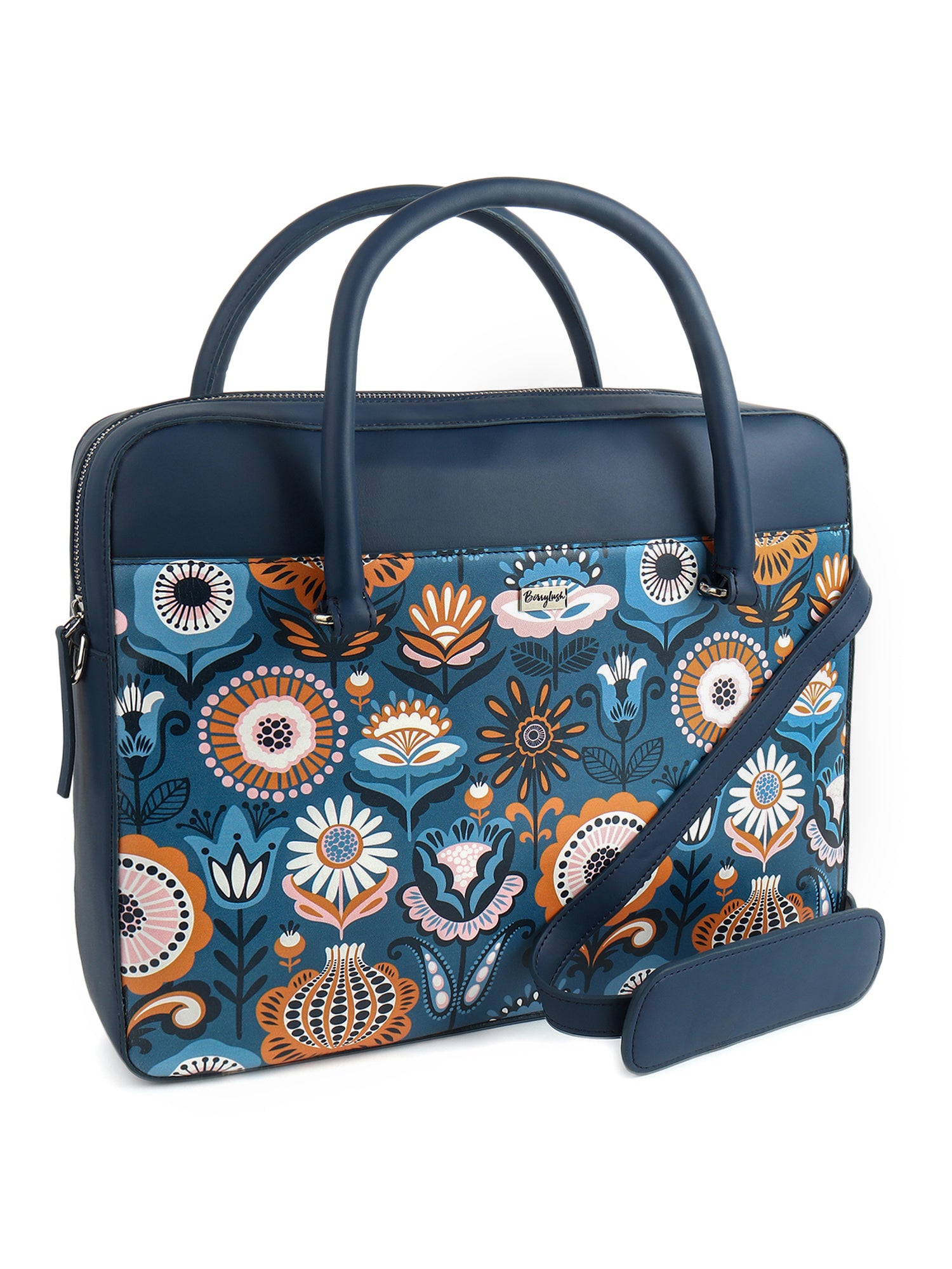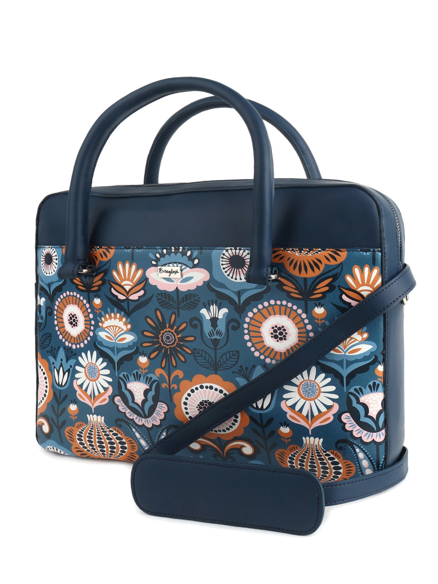Berrylush Women Blue Graphic Printed PU Detachable Sling Strap Regular Laptop Bag