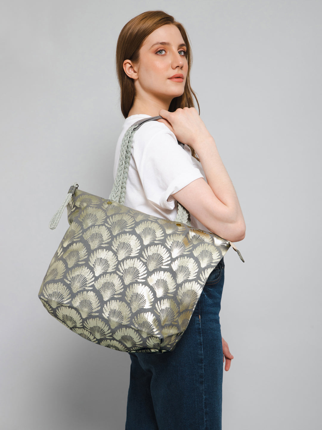 If you're searching for diverse cultural styles and authenticity by selecting this fabulous Grey Floral Printed Regular Tote Bag from the latest accessories collection of Berrylush. The most amusing style statement of this bag is the enchanting mixture of grey shade with silver floral print to give it cinematic and charismatic glam with a monochromatic vibe. Comes with a small inner pocket that lends this bag additional room to hold onto your smaller items separately in an organized way. Moreover, the regular size makes this bag a suitable pick for any casual occasion with a comfortable carrying feature. Complete your casual look flawlessly by teaming this tote bag with your day-to-day outfits.
