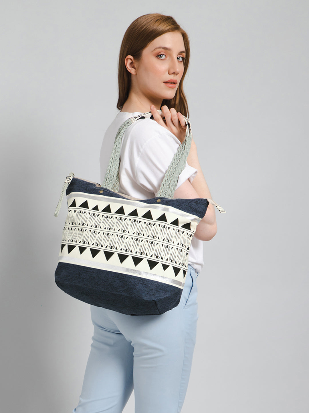 • Blue and white ethnic motif print gives this bag a stylish appearance
