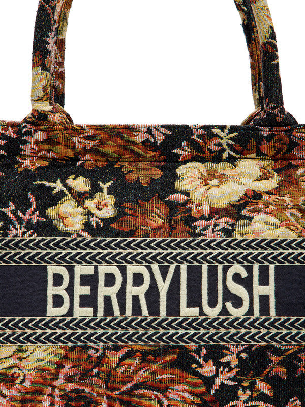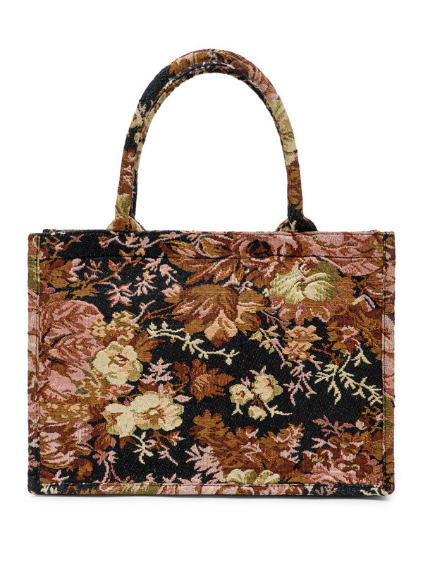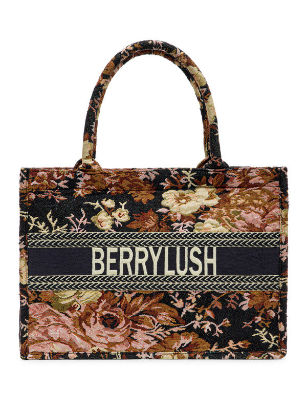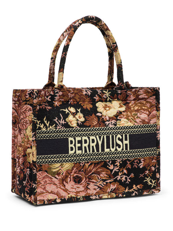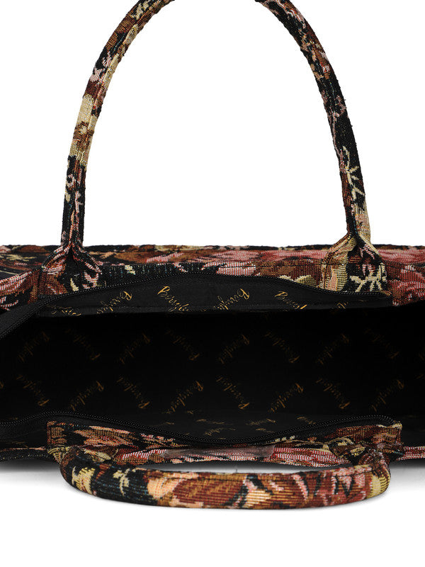 Berrylush Women Black & Pink Floral Printed Polyester Zipper-Up Embroidered Tote Bag