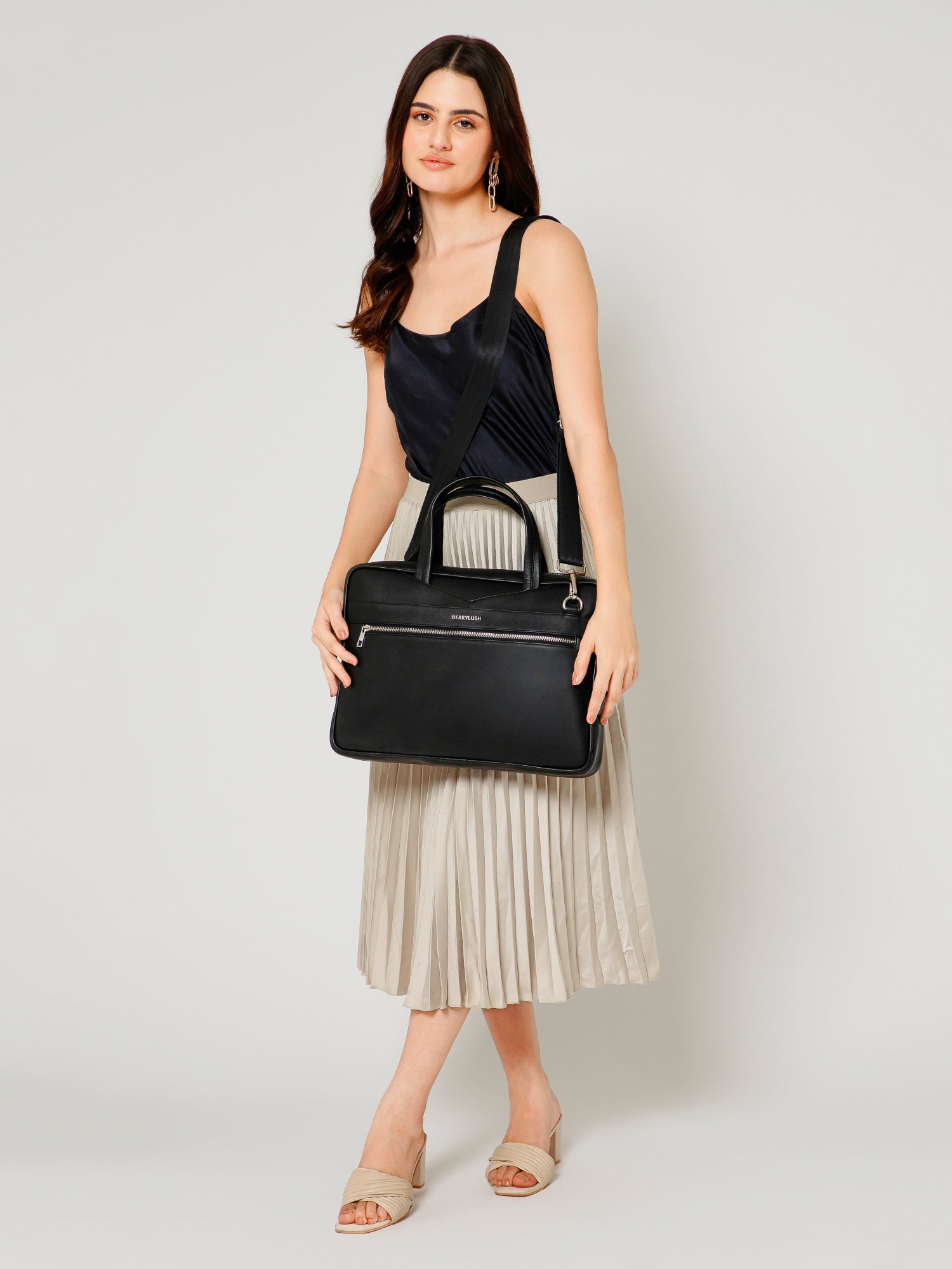 Berrylush Women Black Solid Two Handle Padded Laptop Bag