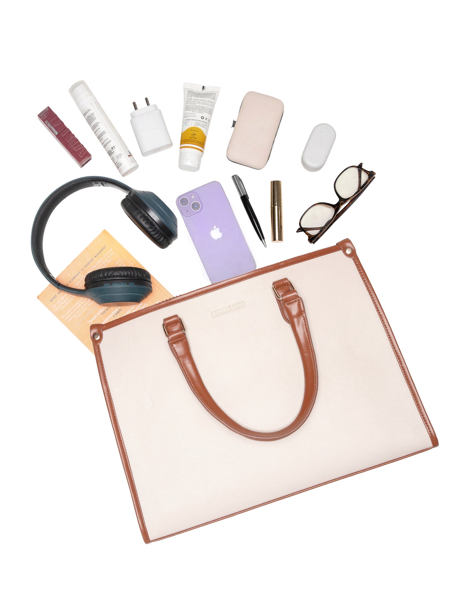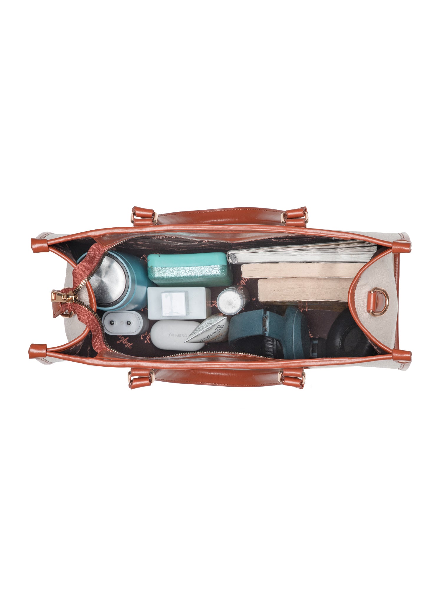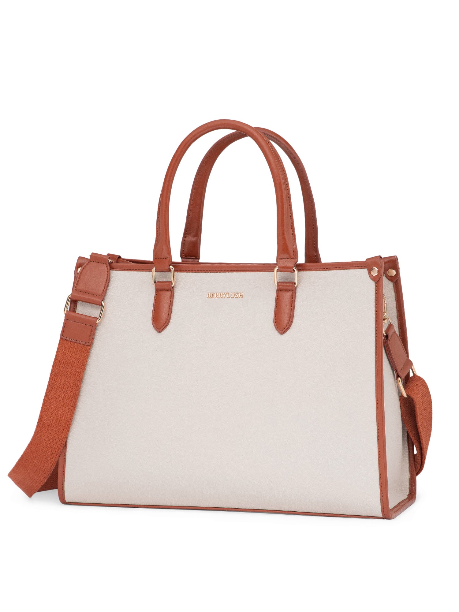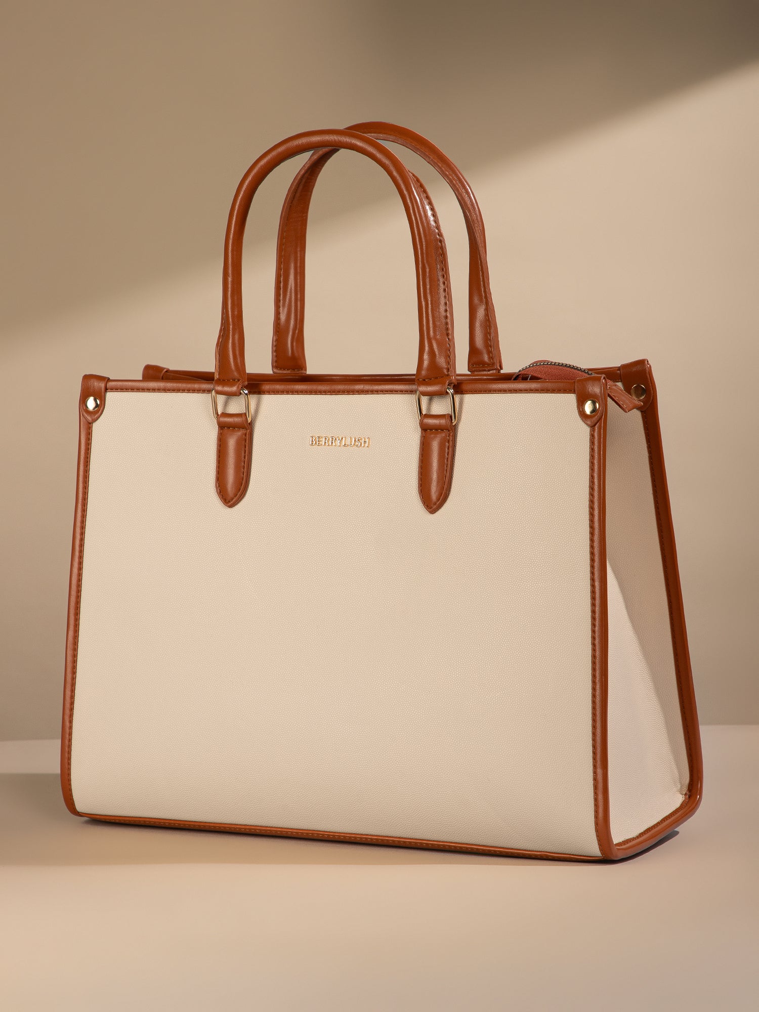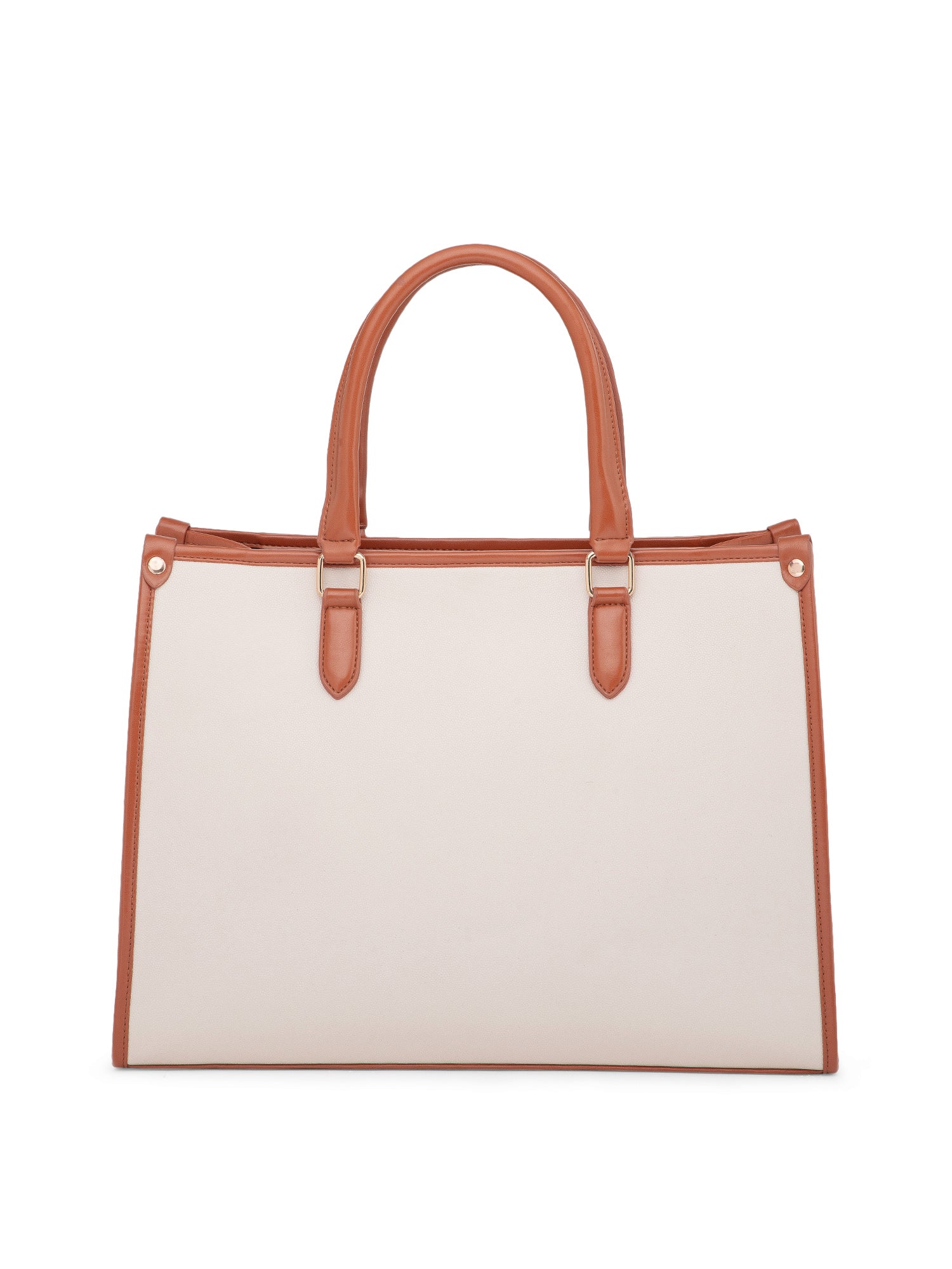 Berrylush Women Beige Solid Two Handles Smart Casual Tote Bag