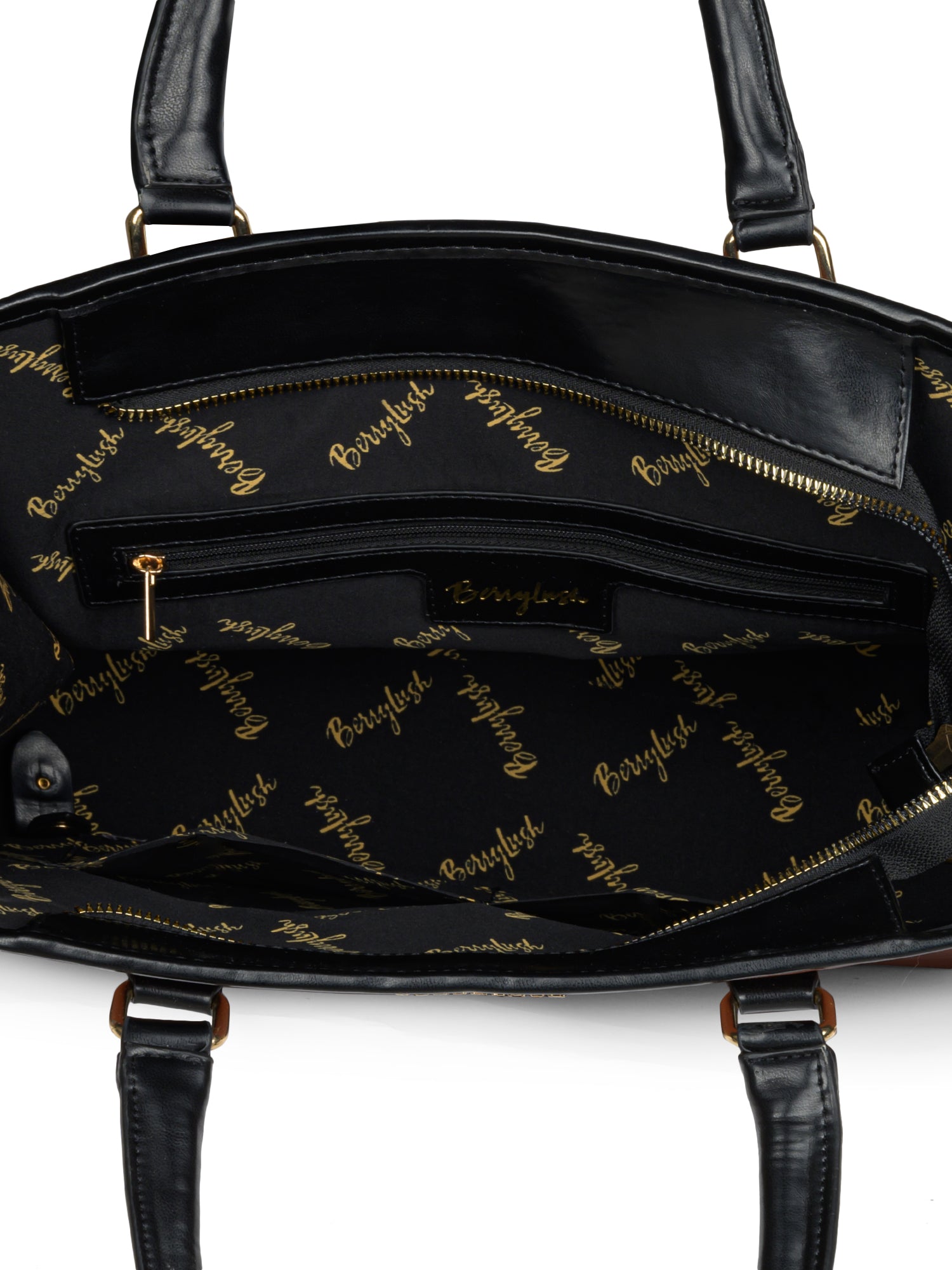 Berrylush Women Solid Tan Synthetic Leather Two-Handles Zipper-Up Detachable Sling Strap Embellished Tote Bag