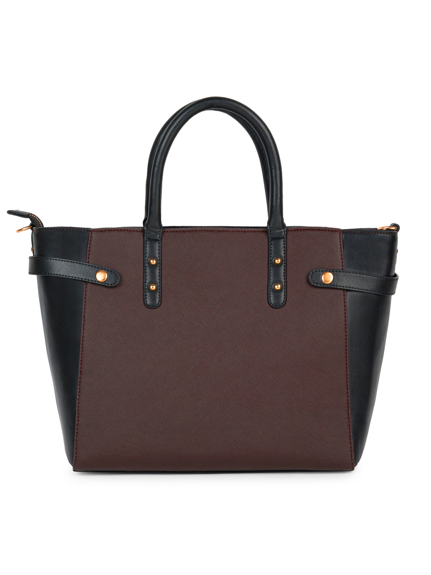 Berrylush Women Solid Brown Synthetic Leather Two-Handles Detachable Sling Strap Embellished Tote Bag
