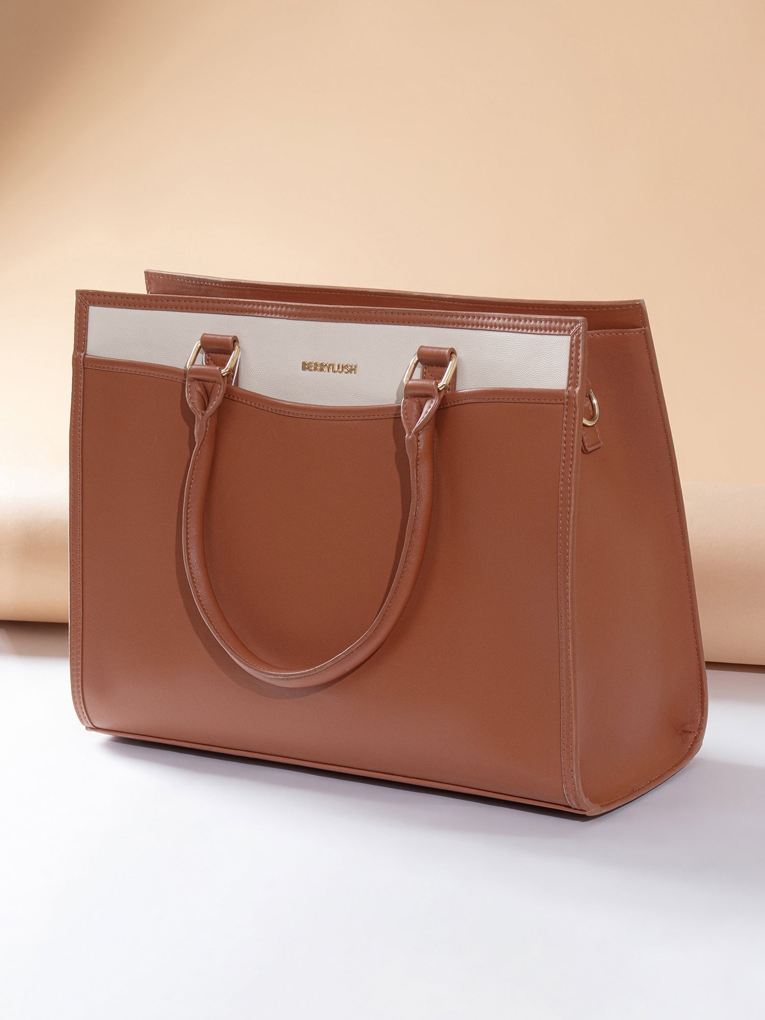 Berrylush Women Tan Solid Two Handles Smart Casual Regular Tote Bag