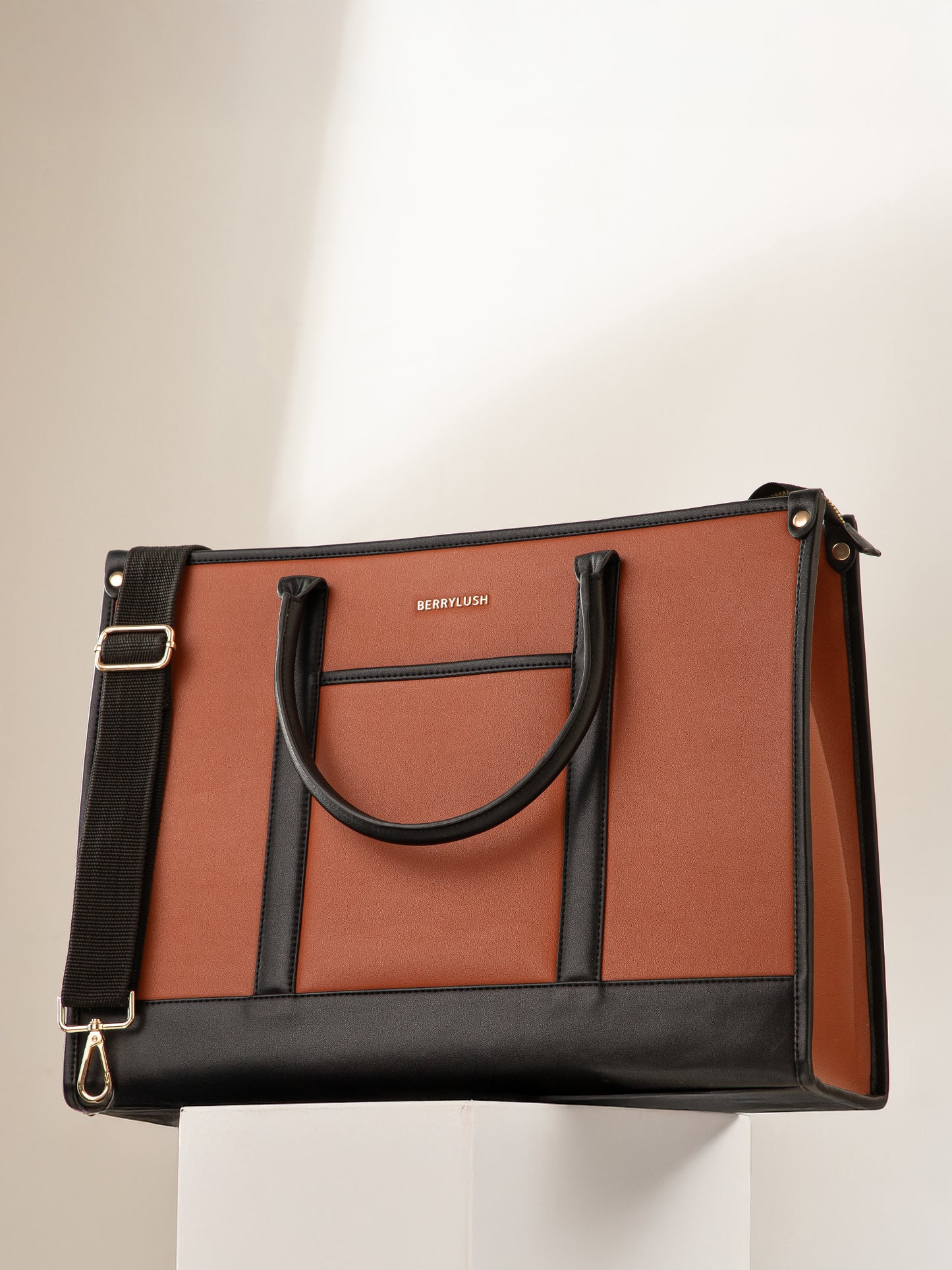 Berrylush Women Tan Solid Two Handles Smart Casual Regular Tote Bag