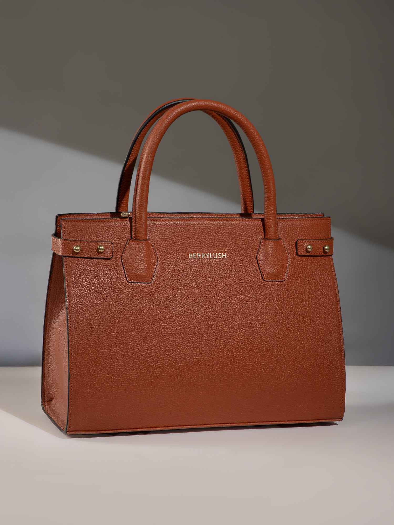 Berrylush Women Tan Solid Two Handles Smart Casual Regular Tote Bag