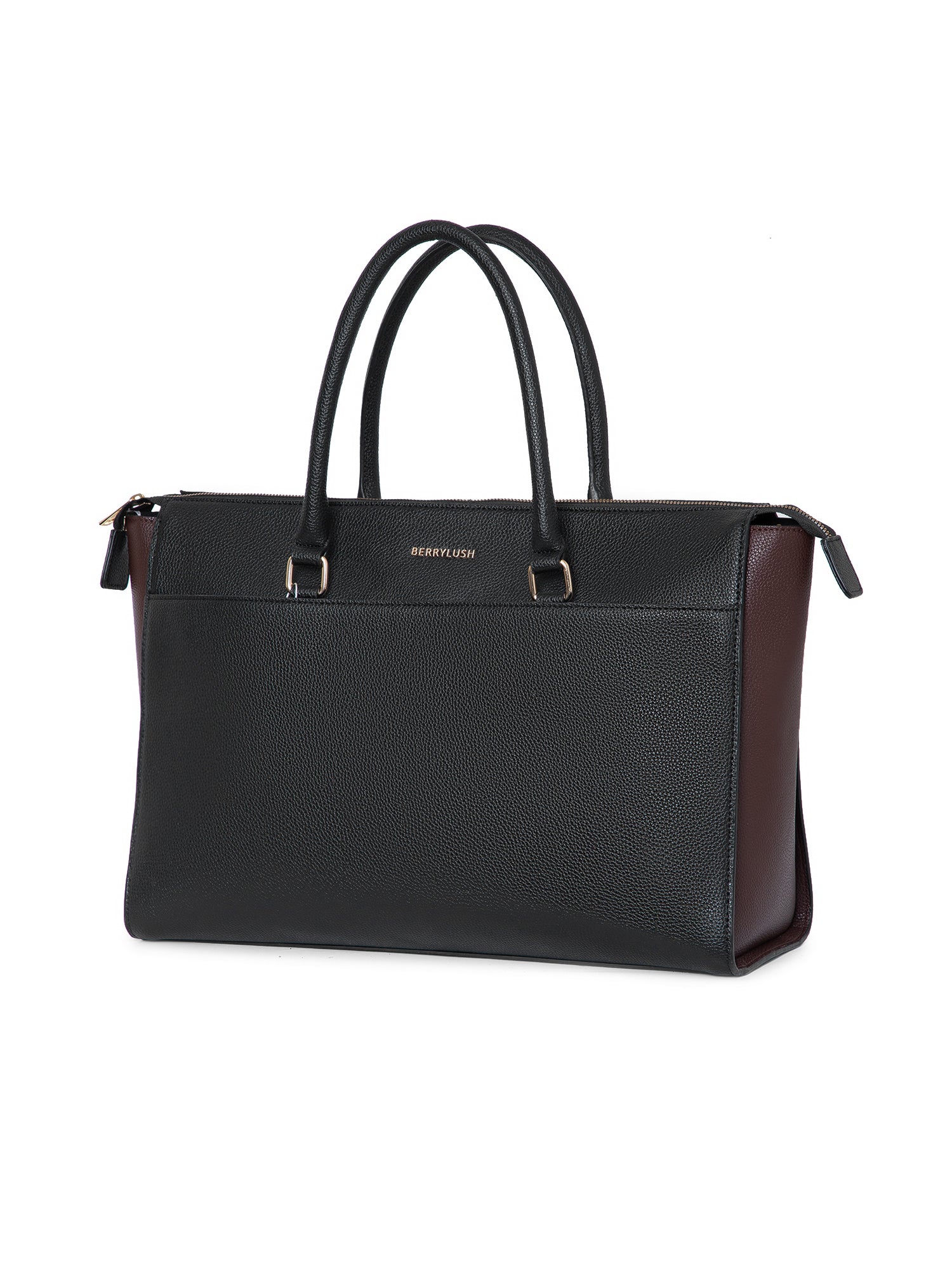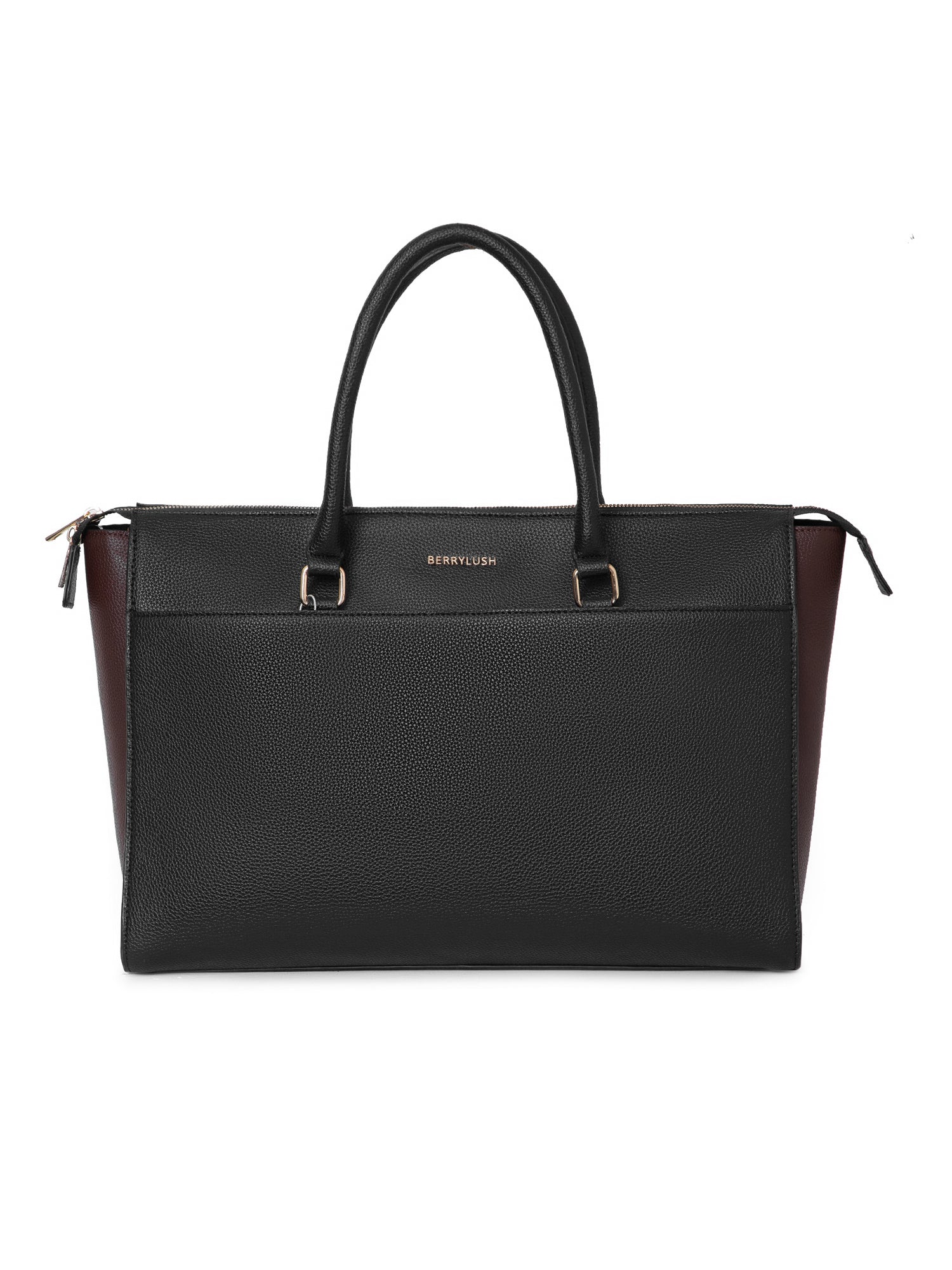 Berrylush Women Black Solid Two Handles Smart Casual Tote Bag