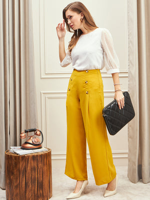 Berrylush BIZwear Women Solid White Dobby Puff Sleeve Top Workwear