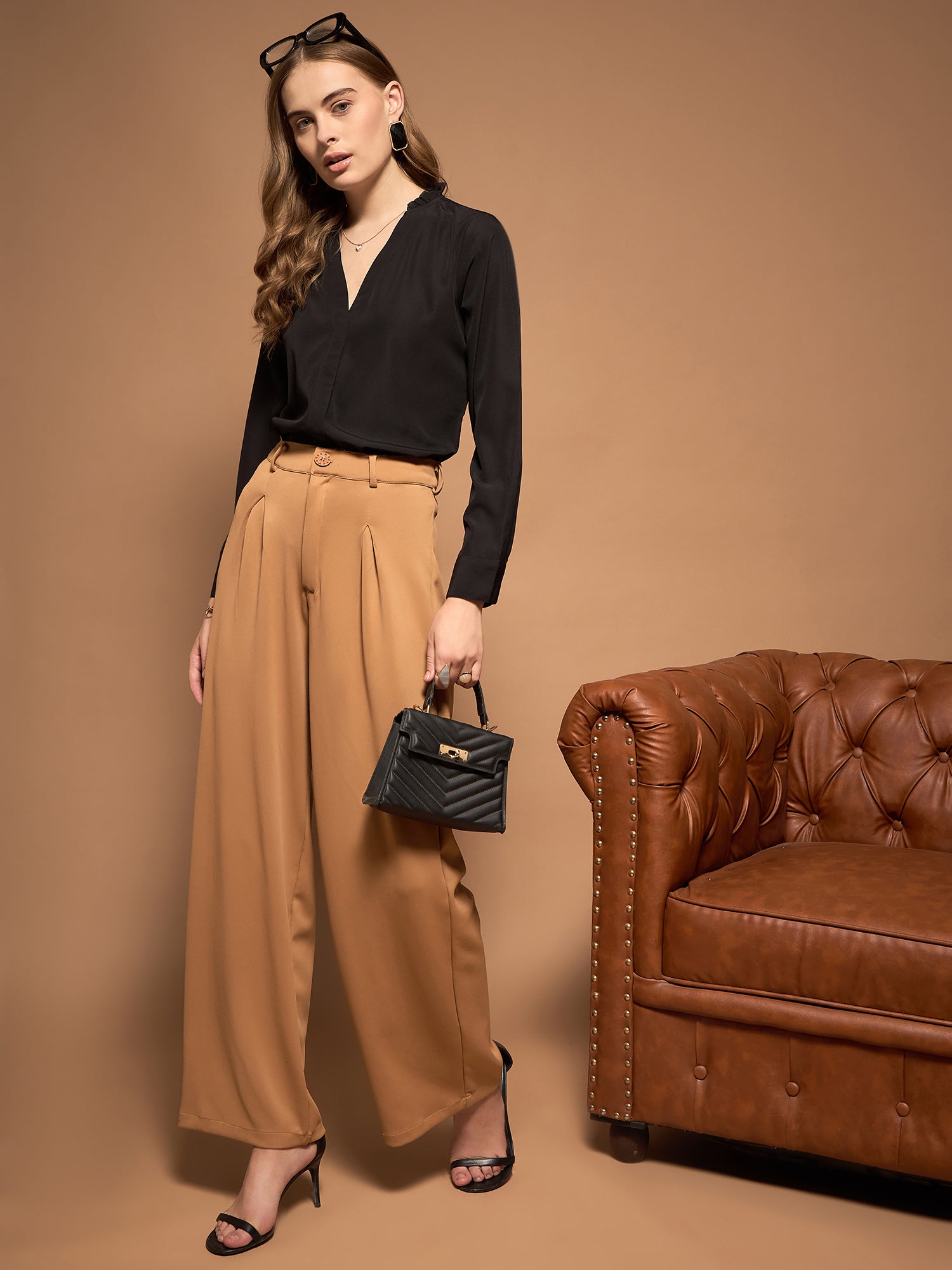Berrylush BIZwear Women Black Solid V-Neck Regular Formal Top