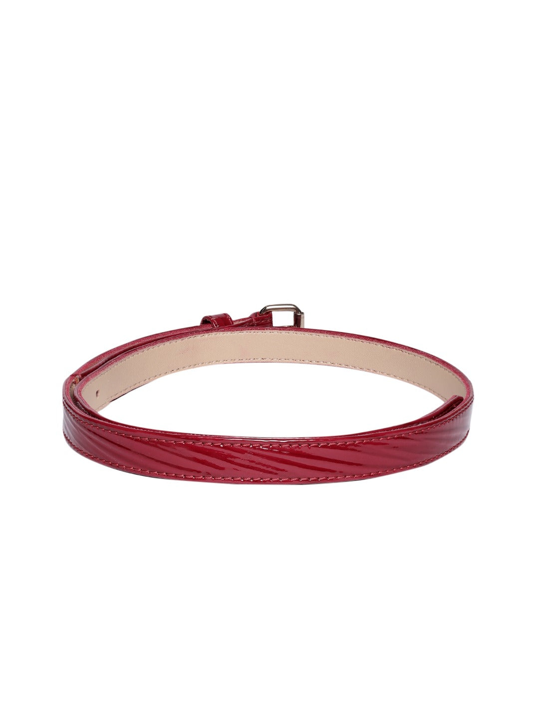 Berrylush Women Red Textured Metallic Buckle PU Belt