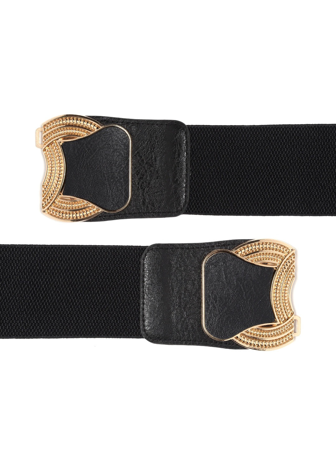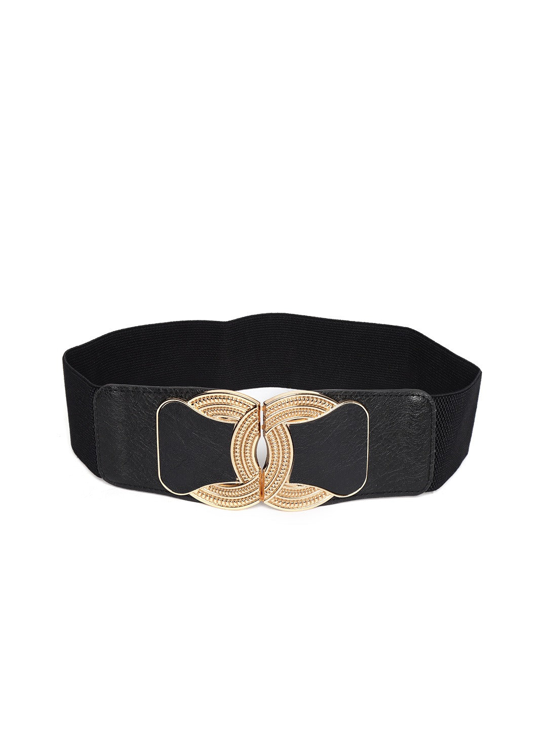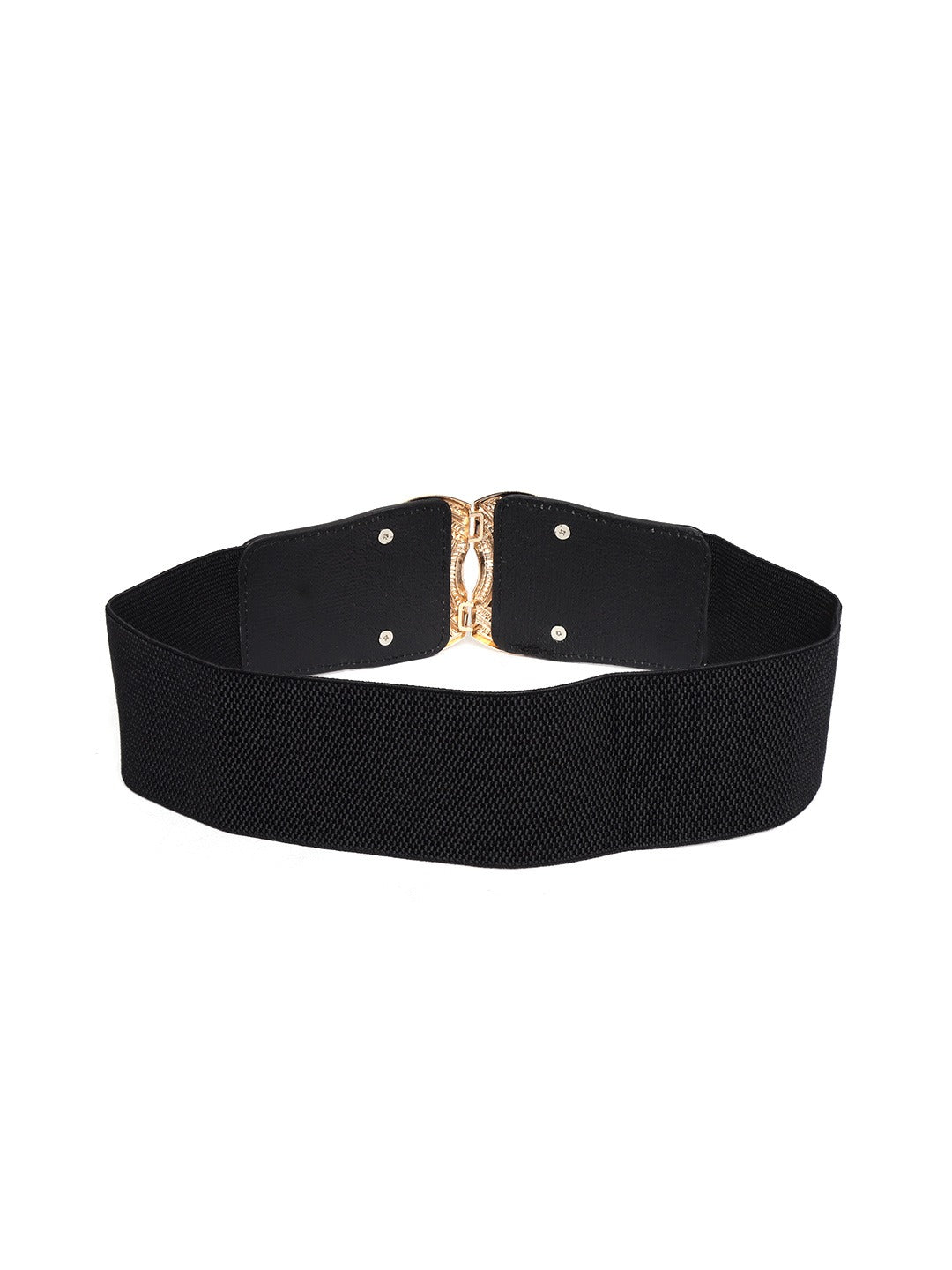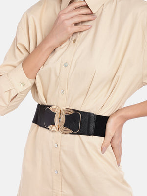 Berrylush Women Black Elastic Strap Golden Buckle Belt