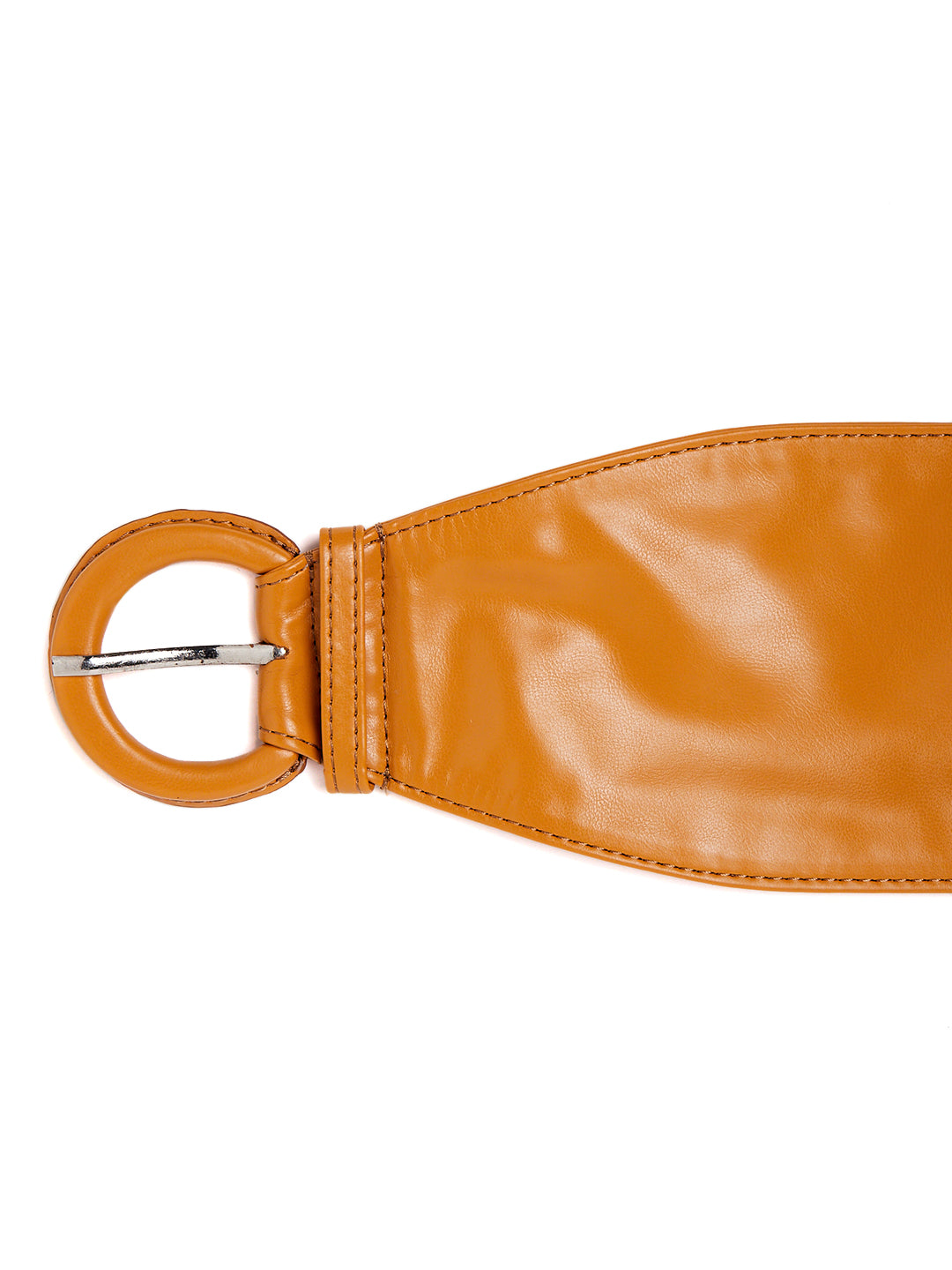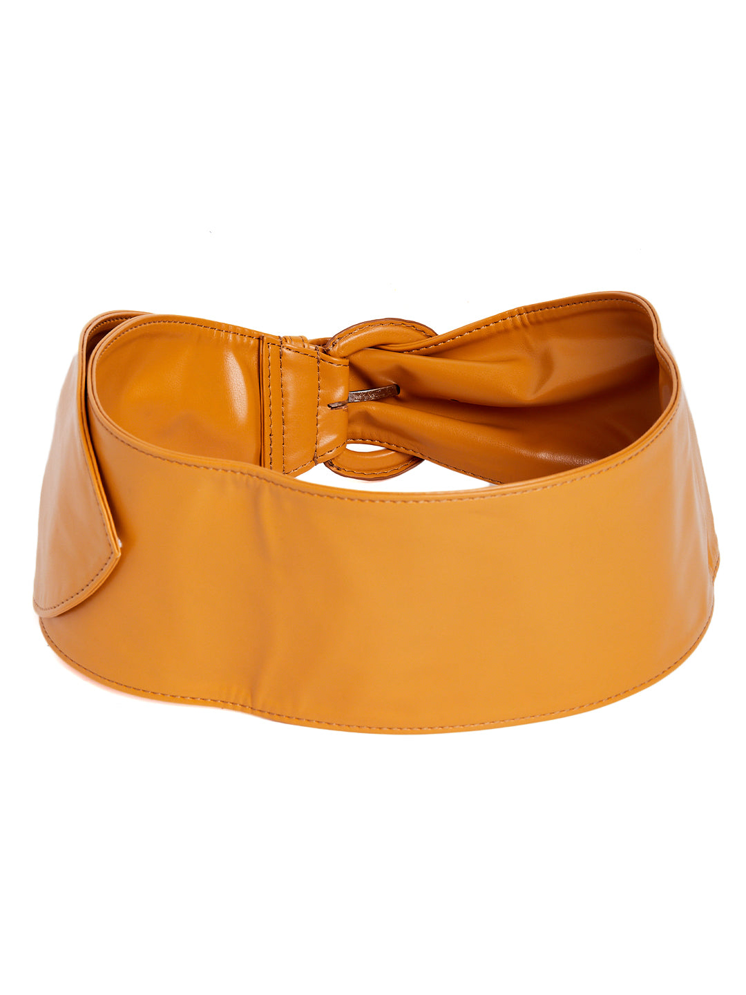 Berrylush Women Solid Yellow Synthetic Leather Tang-Up Slim Belt