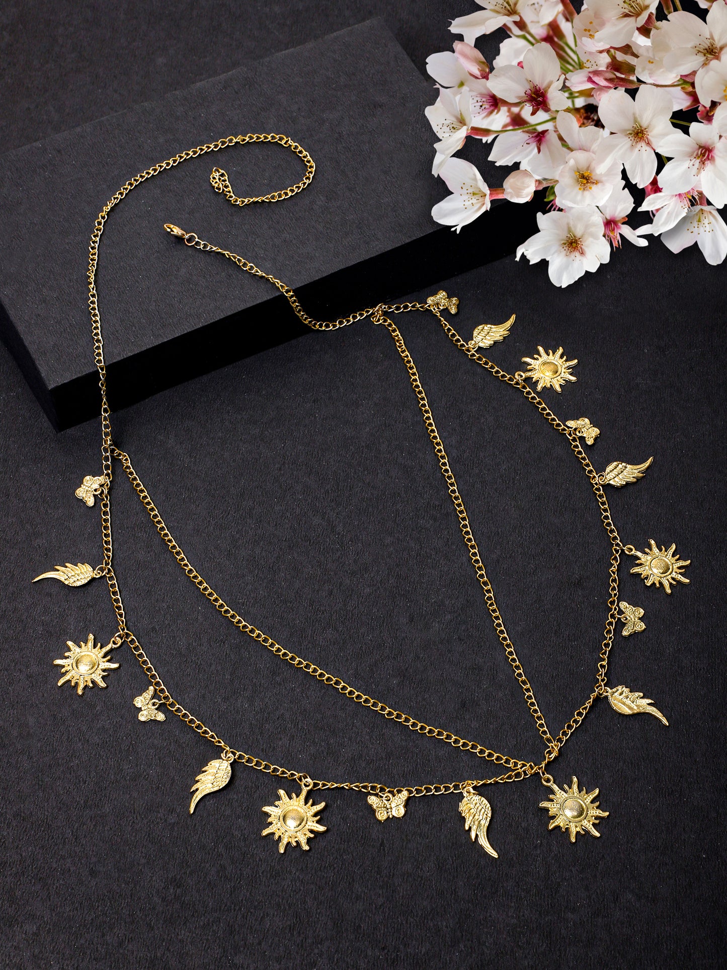 - Golden colour adjoins fancy and gleaming ornamental design to this belt