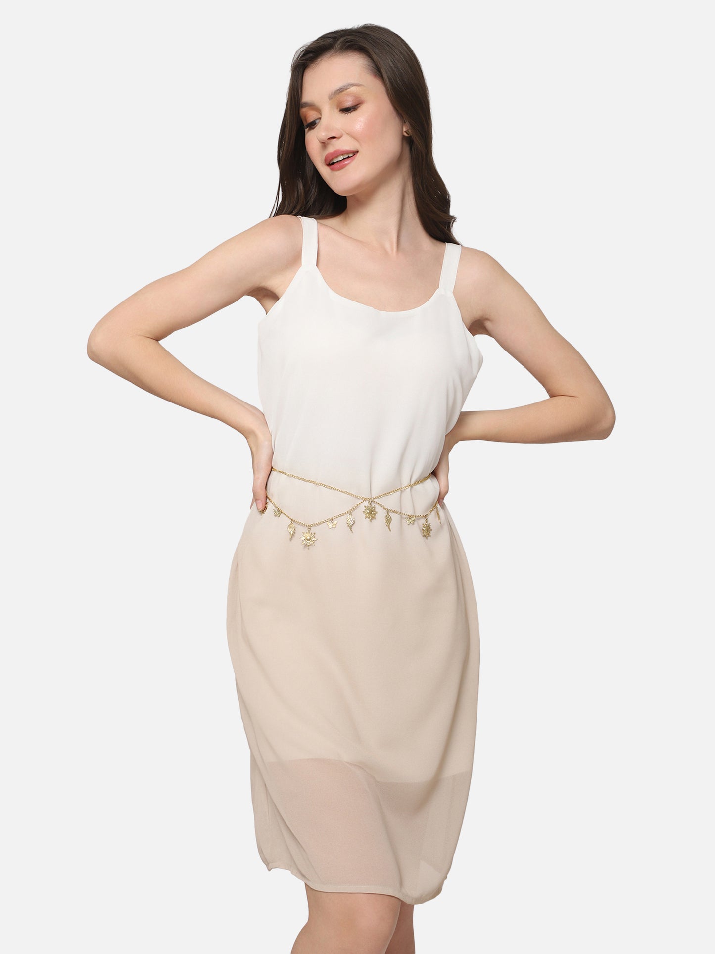 Infuse a classic combination of elegance and beauty within your accessories collection by adding to your shopping cart this enchanting Golden Mystic Embellished Interlock Chain Slim Belt designed by Berrylush. The golden shade gives this belt a bold profile with a dash of versatility and graceful charm. Showing off a mystic embellished design that lends this belt an opulent look with a modish style note. Also, the interlock closure offers this belt a simplified and effortless fastening process with a secure setup. Team up this belt with your favourite flowy dress, cute sandals, and silver handbag to create a fashion-focused look for any casual event.