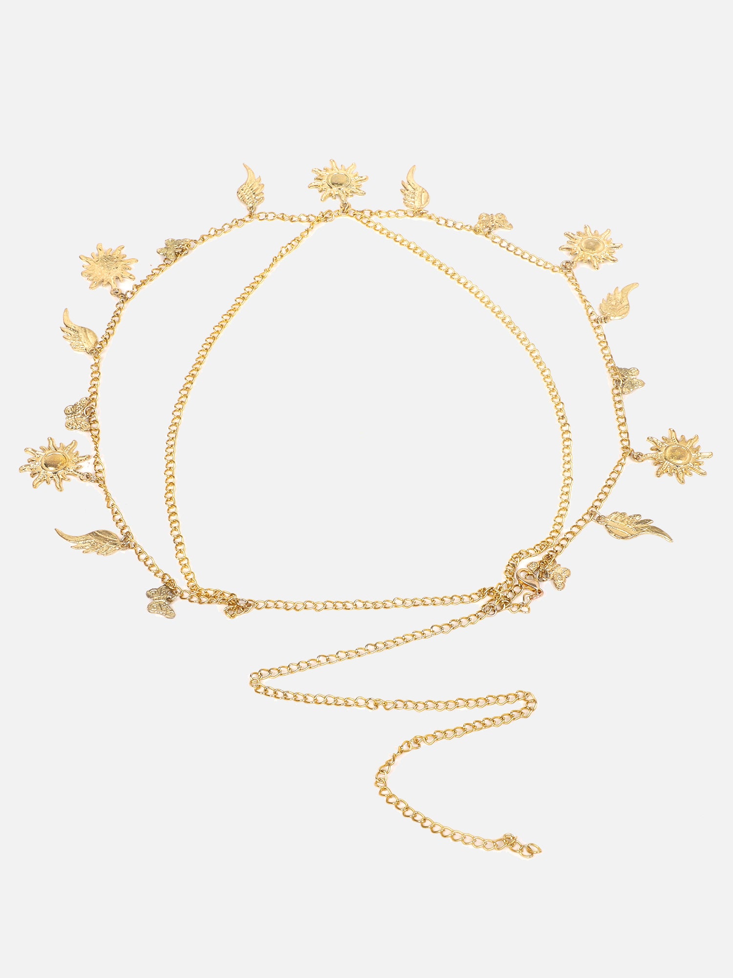 Berrylush Women Golden Mystic Embellished Interlock Chain Slim Belt