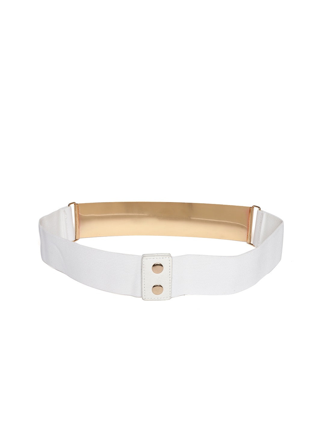 Berrylush Women White Elastic Strap Golden Buckle Belt