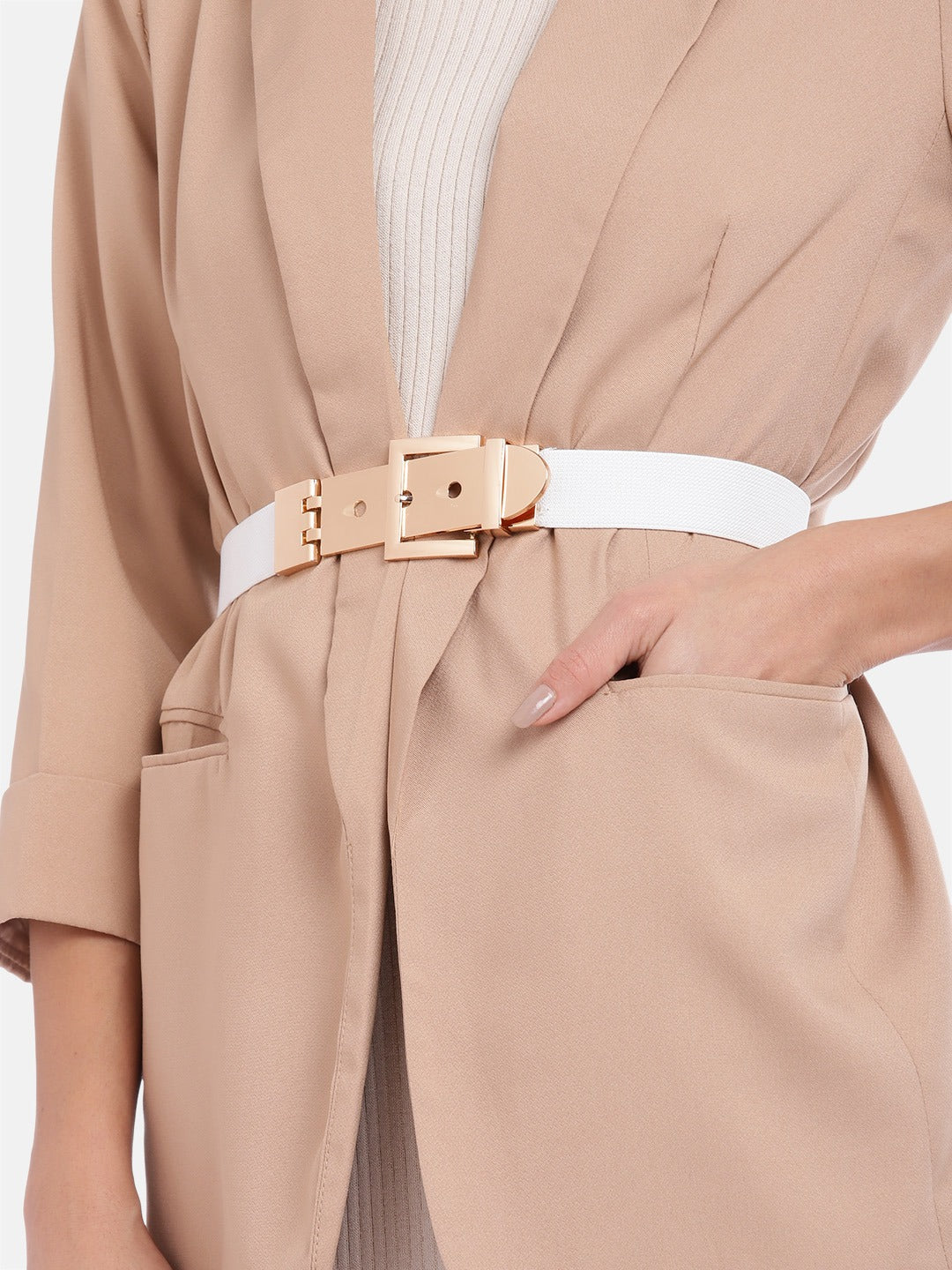 Berrylush Women White Elastic Strap Rose Gold Fancy Buckle Belt