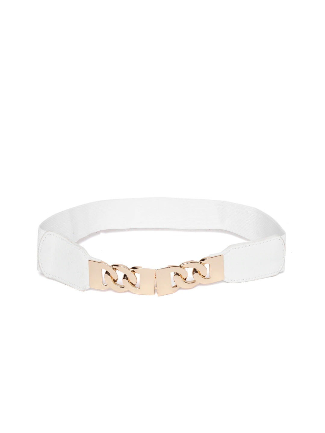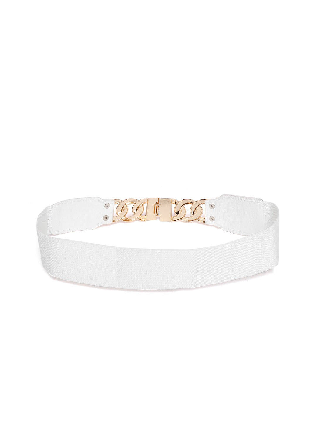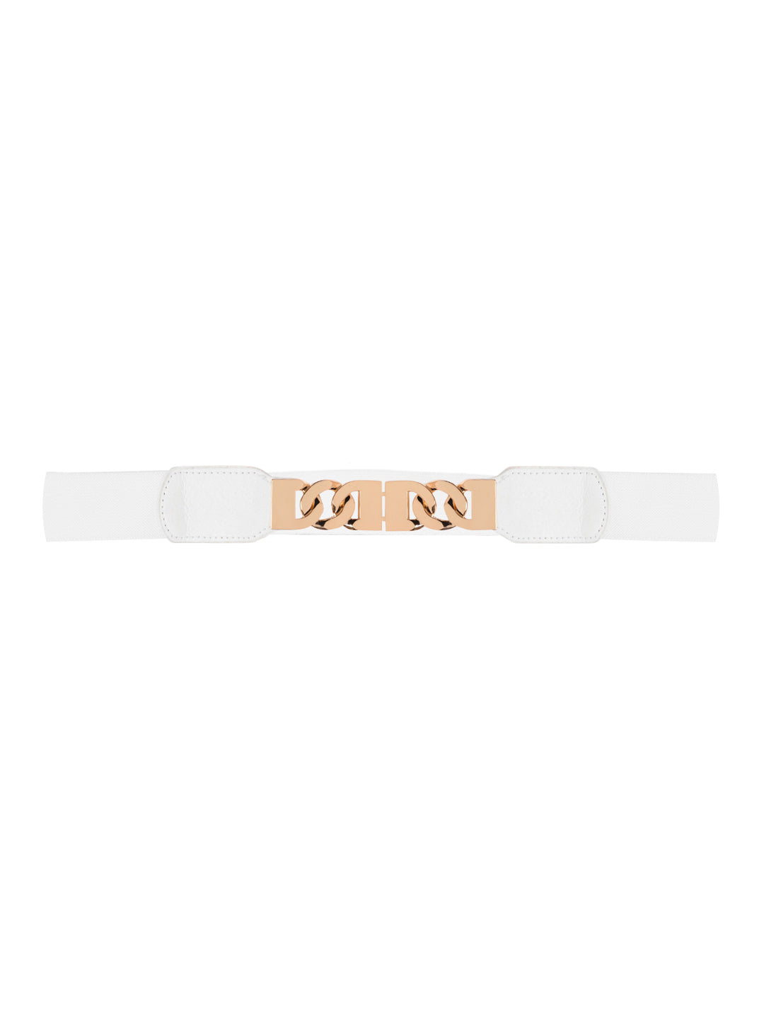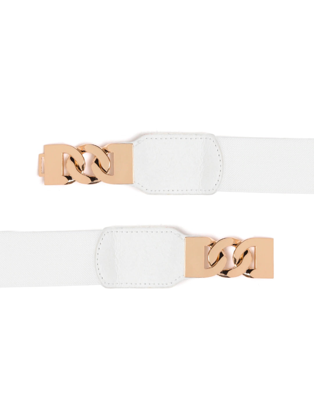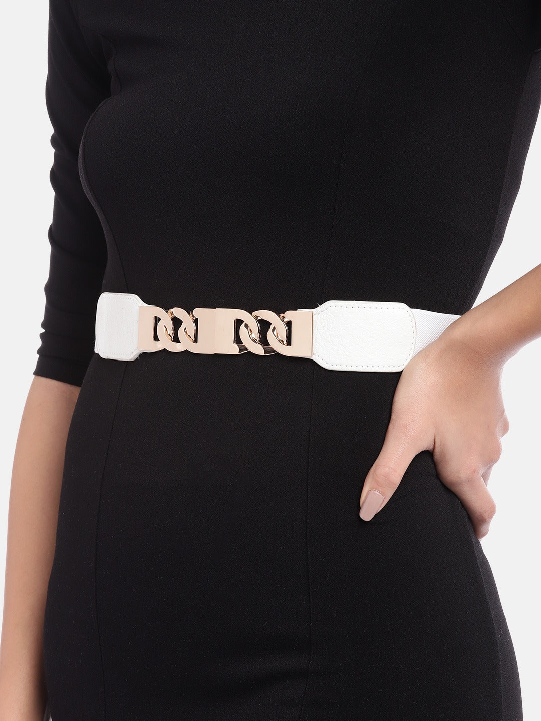Berrylush Women White Elastic Strap Chain Buckle Belt
