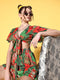 - Red and green tropical print lends this co-ordinate set a vibrant design with the ritzy vibe