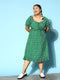 Berrylush Women Plus Size Blue & Maroon Floral Printed Sweetheart Neck Front Tie-Up Flounce Hem A-Line Midi Dress