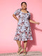 Bring in understated drama with lovely spring hues and breezy silhouette by opting for this beautiful Blue and Maroon Floral Printed A-Line Woven Midi Dress from the exclusive floral print collection of Berrylush. Elegantly tailored in an A-line shape that gives this dress a figure-flattering frame to mimic an hourglass figure. Fashioned with short-puff sleeves that lend your arms a fluffy and comfortable coverage with a retro style note. Also, the midi length offers your legs a modest exposure to support flexible movement with a smart appeal. Take a stroll in the park looking glamorous by wearing this dress with matching wedges, heart shape earrings, and a blue side bag.