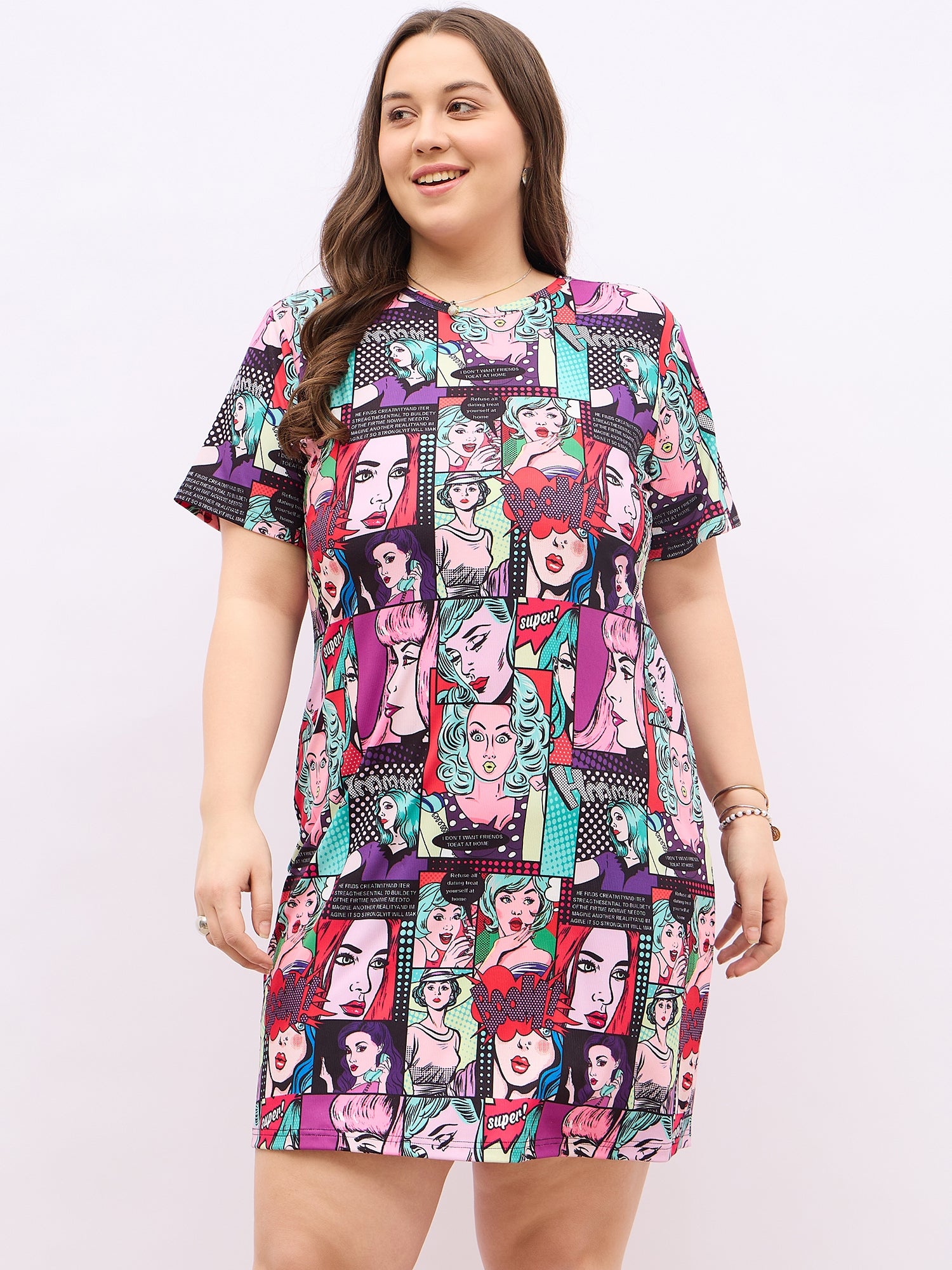 Unleash your vibrant style with Berrylush Curve’s Multicolour Graphic Printed Round Neck Bodycon Mini Dress. Crafted from high-quality polyester, this stunning piece guarantees comfort while hugging your curves beautifully. The eye-catching graphic print in lively hues brings a playful energy to any casual outing, making you the centre of attention wherever you go. Featuring short sleeves and a regular fit that transitions seamlessly into the straight hemline, this dress pairs perfectly with sneakers for brunch or strappy sandals for an evening out. Its round neckline frames the face effortlessly while ensuring all-day wearability without compromising on style. With its opaque knit design and snug silhouette, you'll feel confident embracing every occasion in this chic mini dress. Make a bold statement without saying a word - indulge in fashion-forward flair today!