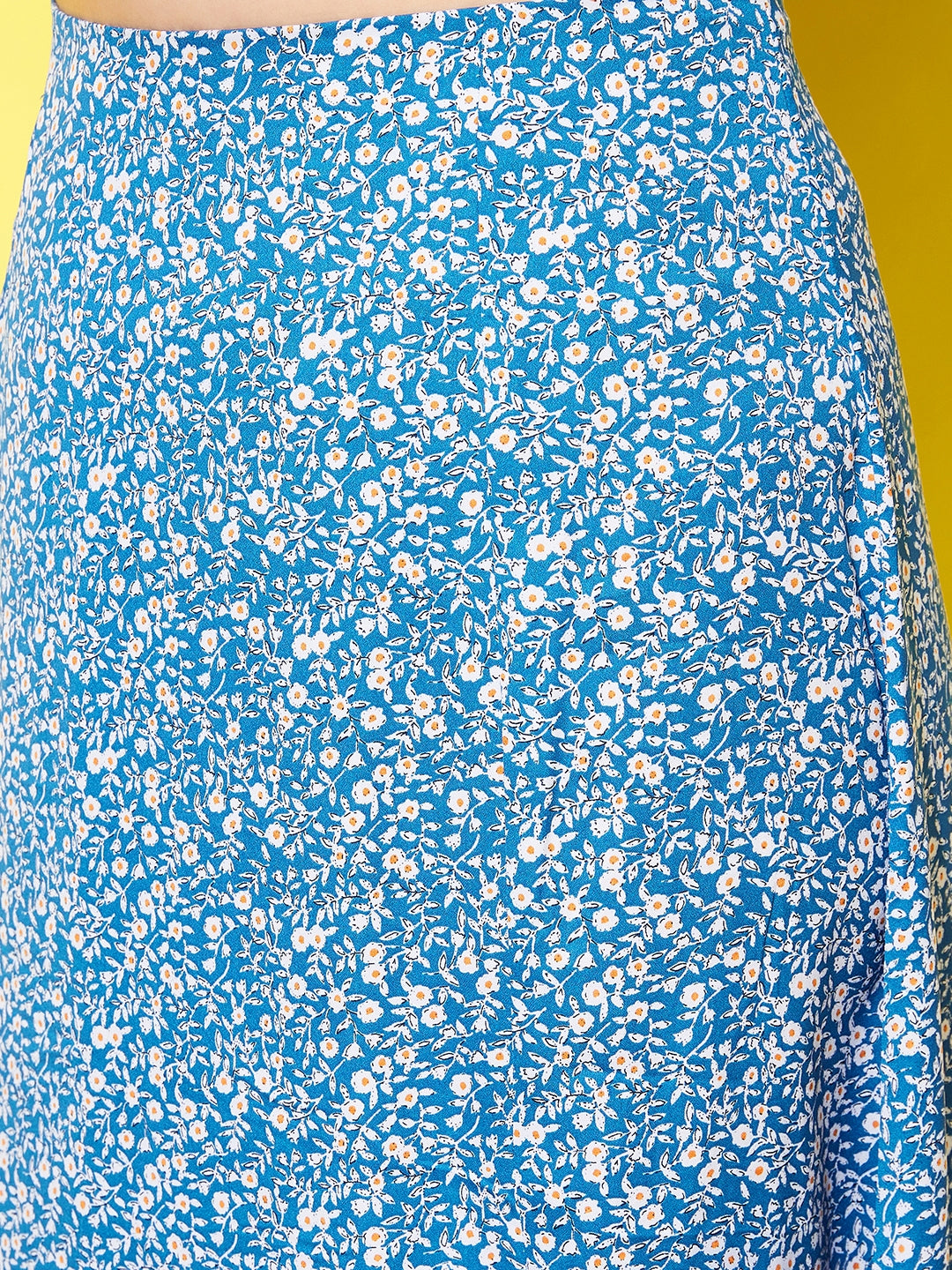 Introducing Berrylush's Blue & White Floral Printed High-Rise Waist Thigh-High Slit Flared A-Line Maxi Skirt - a fusion of style and comfort. The casual yet elegant design makes it apt for all your laid-back plans. Lovingly crafted from the finest quality woven polyester, this crepe fabric skirt offers long-lasting durability and ultimate wearability. Savour its opaque transparency that ensures you look chic without compromising on modesty. This high-rise waist flared maxi skirt showcases an irresistible floral print in serene blues and whites alongside an adventurous thigh-high slit detailing that turns heads wherever you go! And with its convenient zipper closure, wearing it is as easy as loving it! Be ready to sway in style with Berrylus's flattering A-line silhouette.